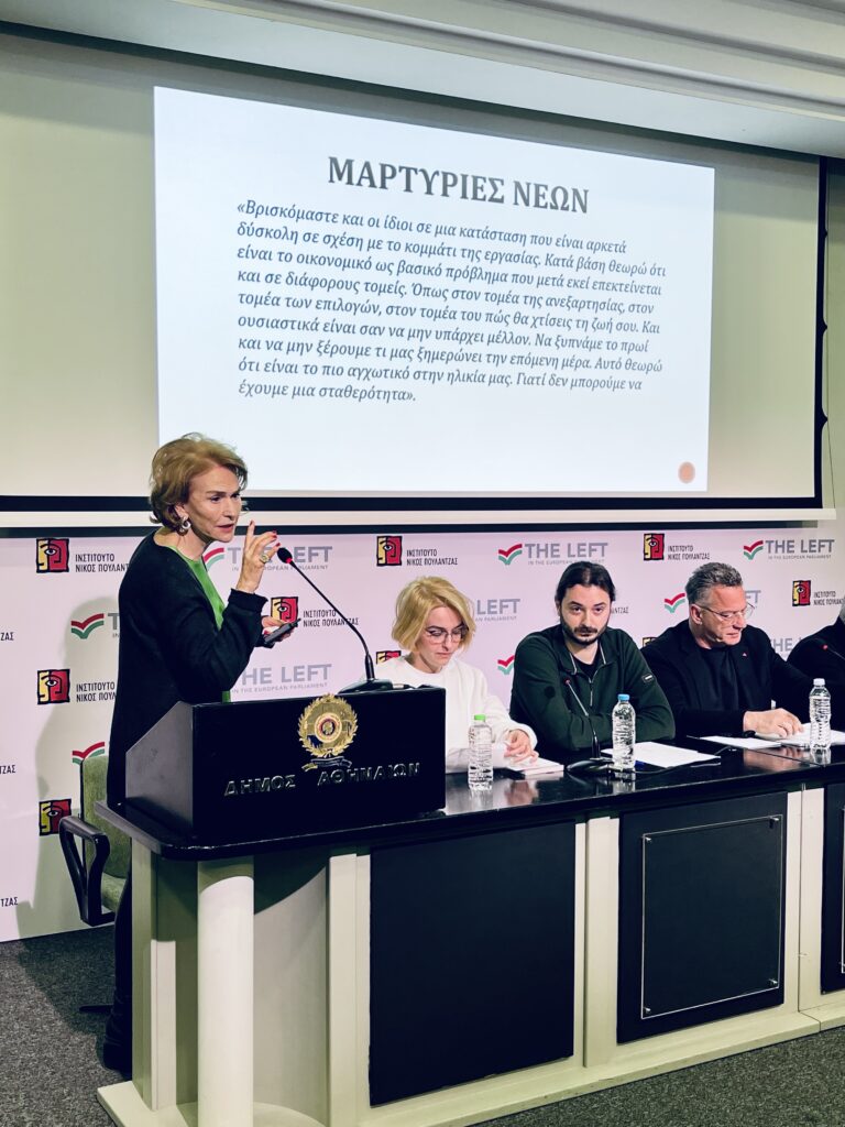 Πραγματοποιήθηκε με επιτυχία η εκδήλωση «Νέοι και Νέες για την Ευρώπη και την Αριστερά – Αντιλήψεις και Προσδοκίες» την Παρασκευή 27 Φεβρουαρίου, όπου παρουσιάστηκαν τα ευρήματα της έρευνας της Prorata «Χαρτογραφώντας τη Νεολαία» για λογαρισμό του Ινστιτούτου Νίκος Πουλαντζάς και της Ομάδας της Αριστεράς στο Ευρωπαϊκό Κοινοβούλιο (The Left).