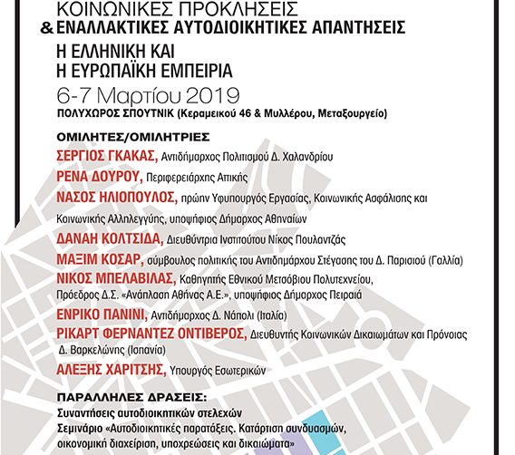 Αυτοδιοικητικό διήμερο “Μεγάλες κοινωνικές προκλήσεις και εναλλακτικές αυτοδιοικητικές απαντήσεις : Η ελληνική και η ευρωπαϊκή εμπειρία ” (Βίντεο/ Φωτογραφίες) 6 Μαρτίου, 2019