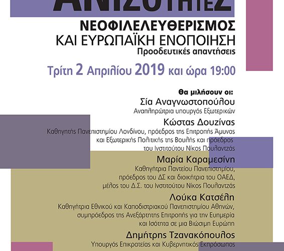 Παρουσίαση βιβλίου: “Ανισότητες, νεοφιλελευθερισμός και ευρωπαϊκή ενοποίηση. Προοδευτικές απαντήσεις” (Video) 5 Απριλίου, 2019
