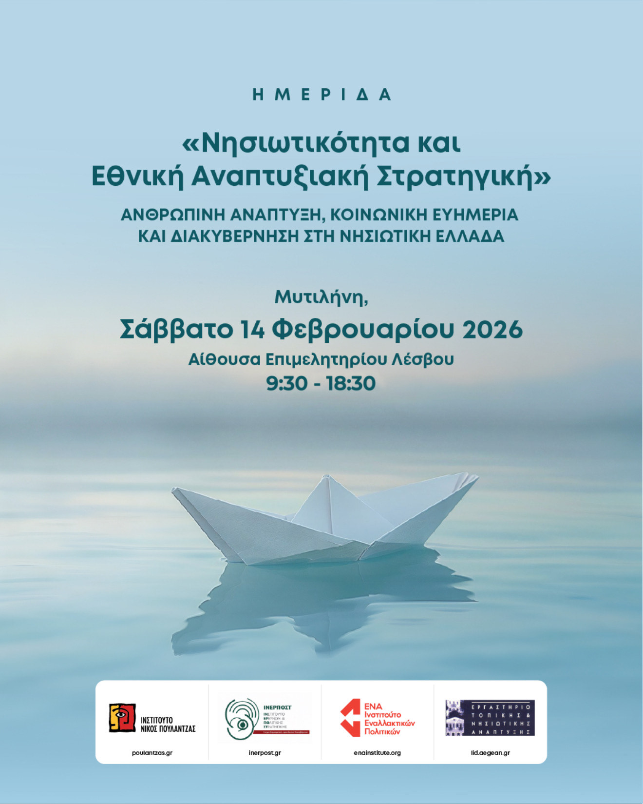 Αυτός είναι ο λόγος που εκπρόσωποι της τοπικής αυτοδιοίκησης, των περιφερειακών αρχών, των πολιτικών κομμάτων, των επιχειρήσεων, της ακαδημαϊκής και ερευνητικής κοινότητας αλλά και των κινημάτων πολιτών, στο πλαίσιο μίας νέας διαμορφούμενης σύμπραξης, συναντιούνται στη Μυτιλήνη, το Σάββατο 14 Φεβρουαρίου 2026, για να συζητήσουν τα προβλήματα που έχουν ανακύψει αλλά κυρίως τις παρεμβάσεις που πρέπει να δρομολογηθούν για την αντιμετώπισή τους στο πλαίσιο μιας Εθνικής Στρατηγικής για τη Νησιωτικότητα.