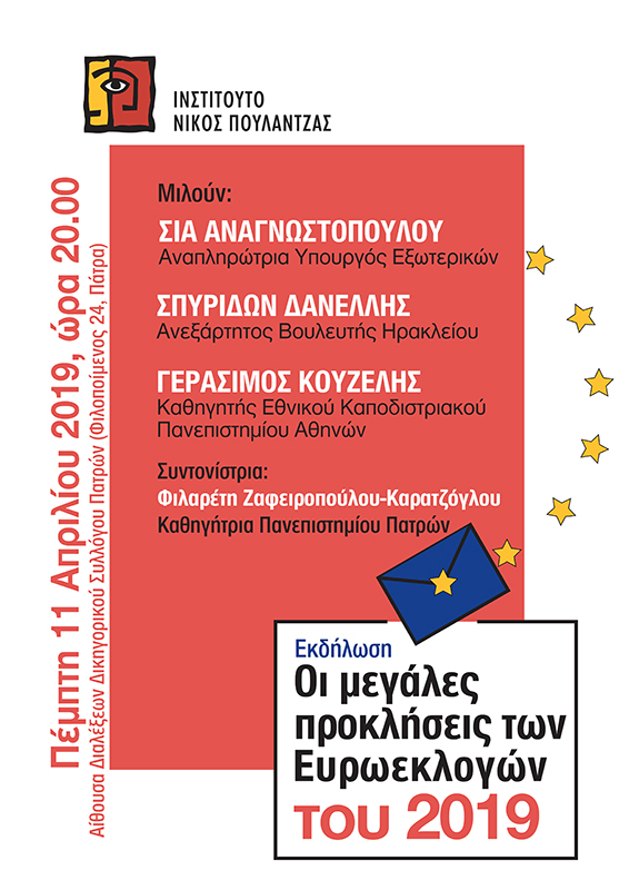 Λίγες εβδομάδες πριν τις πιο κρίσιμες για το μέλλον της Ευρωπαϊκής Ένωσης εκλογές, το Ινστιτούτο Νίκος Πουλαντζάς, σε συνέχεια του κύκλου εκδηλώσεων «Αριστερά και Ευρώπη», διευρύνει τη συζήτηση, επιχειρώντας να φέρει σε επαφή με τους προβληματισμούς γύρω από το παρόν και το μέλλον της ευρωπαϊκής ενοποίησης και το κοινό της περιφέρειας.