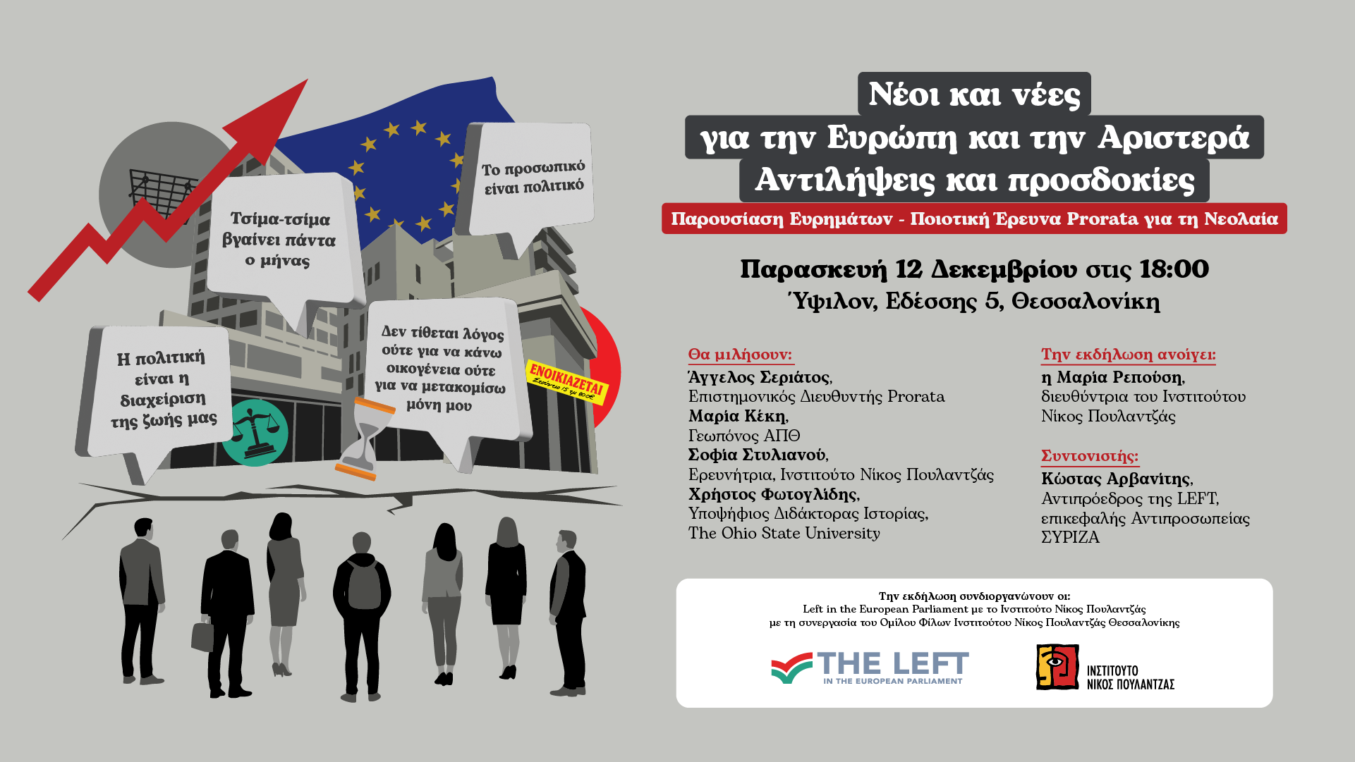 Ημερομηνία: Παρασκευή, 12 Δεκεμβρίου 2025 Ώρα: 18:00 Τόπος: Ύψιλον, Εδέσσης 5, Θεσσαλονίκη Το Ινστιτούτο Νίκος Πουλαντζάς, η Left in the European Parliament και ο Όμιλος Φίλων Ινστιτούτου Νίκος Πουλαντζάς Θεσσαλονίκης σας καλούν να παραστείτε σε εκδήλωση που συνδιοργανώνουν για τις αντιλήψεις και τις προσδοκίες των νέων από την πολιτική, την Ευρώπη και την Αριστερά. Στην […]