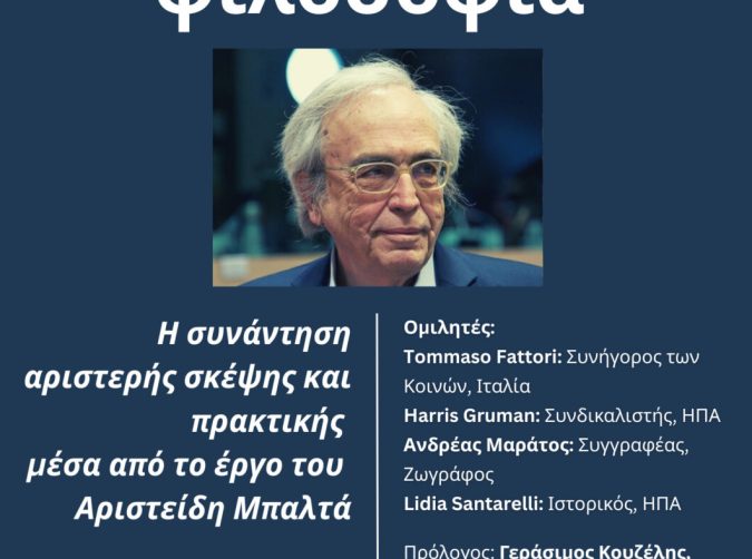 Η πολιτική ως φιλοσοφία. Η συνάντηση αριστερής σκέψης και πρακτικής μέσα από το έργο του Αριστείδη Μπαλτά. 1 Φεβρουαρίου, 2023