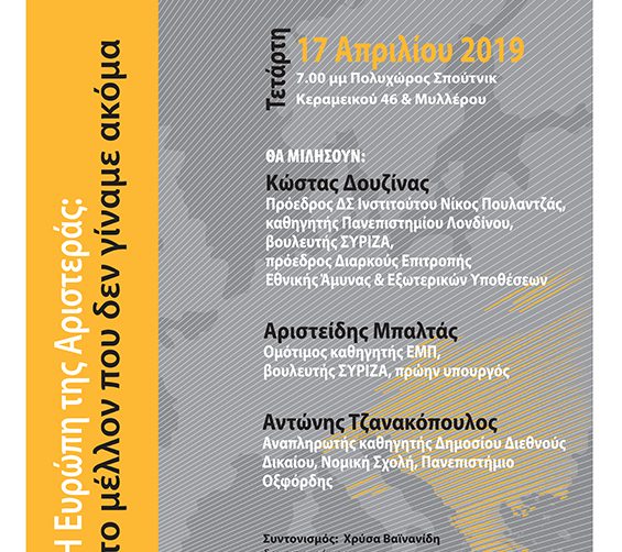 Η Ευρώπη στη δίνη της καπιταλιστικής κρίσης: Νεοφιλελεύθερες πολιτικές – Αριστερές απαντήσεις (Video) 27 Μαρτίου, 2019